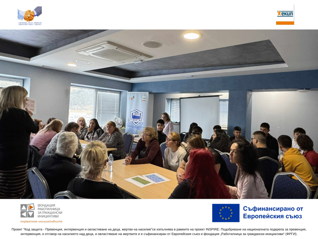 Темата за насилието над деца остава болезнена и често премълчавана. Именно затова сдружение „Амала – Приятели“ изпълнява проекта „Код защита – превенция, интервенция и овластяване на деца, жертви на насилие“, финансиран от Европейския съюз и Фондация Работилница за граждански инициативи (ФРГИ) по програма INSPIRE.