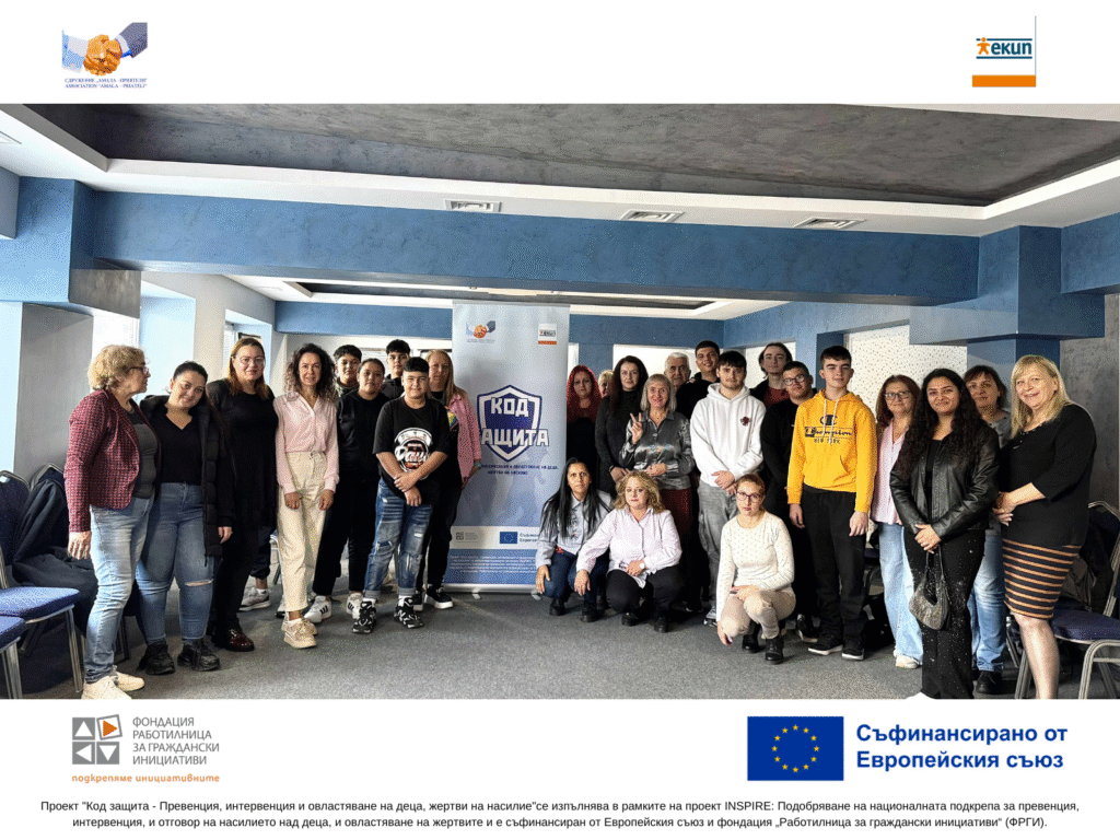 Темата за насилието над деца остава болезнена и често премълчавана. Именно затова сдружение „Амала – Приятели“ изпълнява проекта „Код защита – превенция, интервенция и овластяване на деца, жертви на насилие“, финансиран от Европейския съюз и Фондация Работилница за граждански инициативи (ФРГИ) по програма INSPIRE. 🎯 Целта на проекта е да подпомогне превенцията на насилието, като